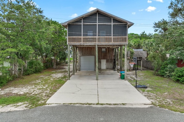 Front screened porch with ping pong table and outdoor lounge couch