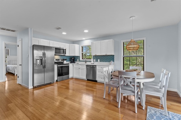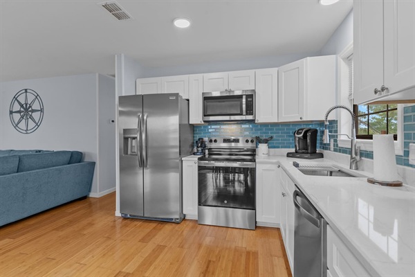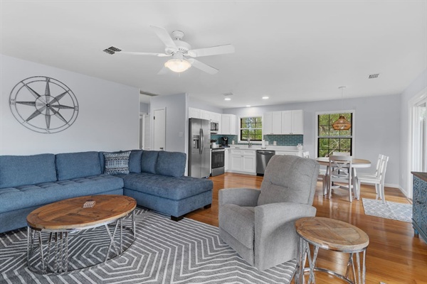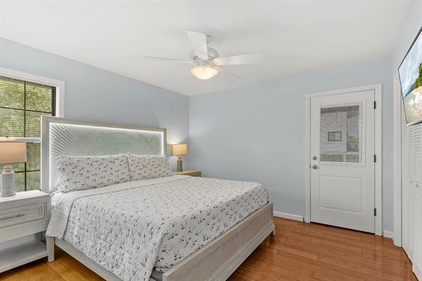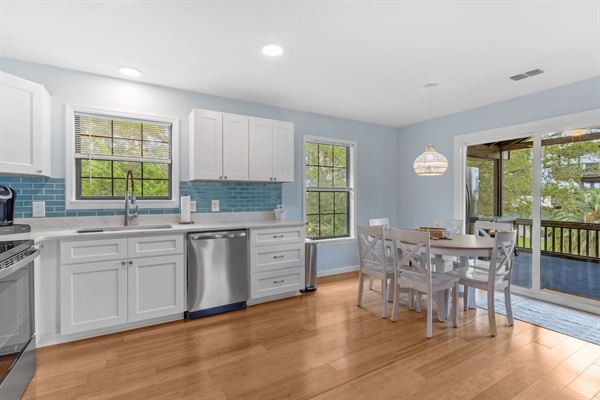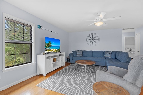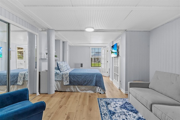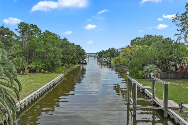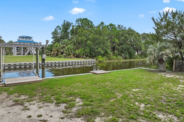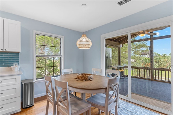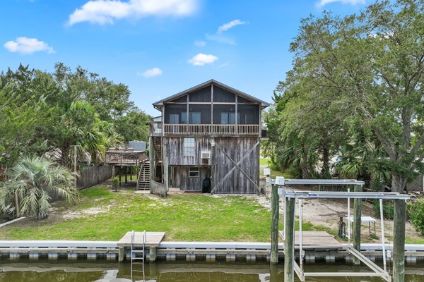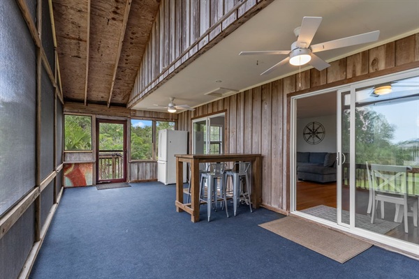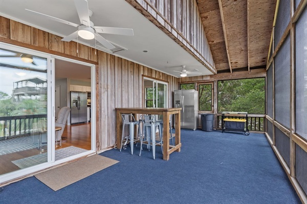 Canal Screened Porch with outdoor seating, bait fridge, and drinks fridge